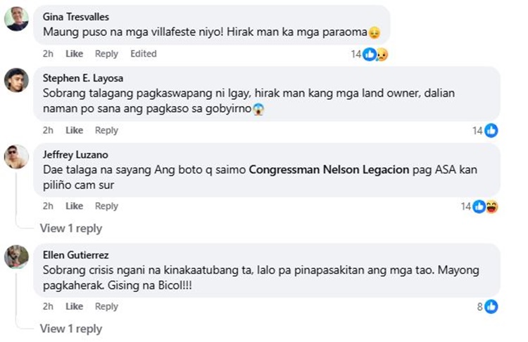 In a post on his Facebook page, Congressman Nelson Legacion appealed for a pause in the bulldozing of farmlands owned by residents of Cadlan, as these serve as their main source of livelihood. The post quickly went viral and drew various reactions online.